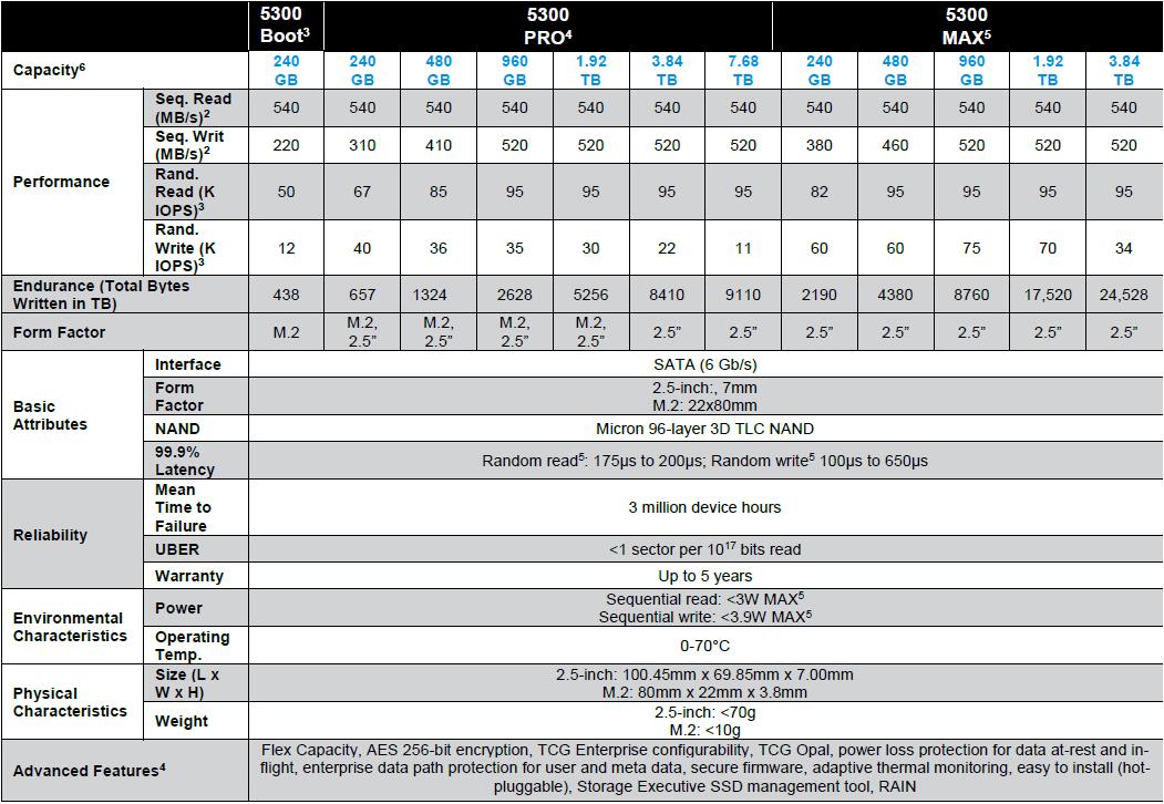 | 5300PRO 1.92T | 讀540MB/S,95000 IOPS,寫520MB/S,30000 IOPS,寫入壽命5256TPBW |